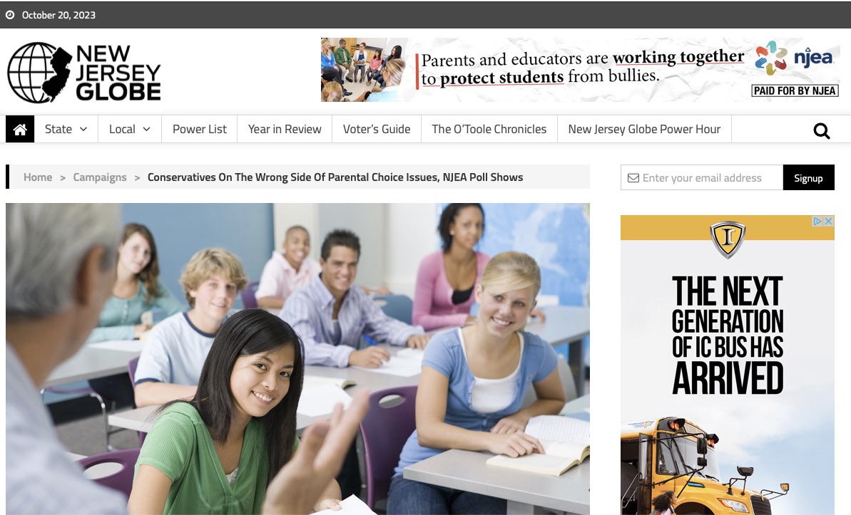 Or worse. The New Jersey Globe’s David Wildstein wrote a news story on the NJEA poll with the headline “Conservatives On The Wrong Side Of Parental Choice Issues, NJEA Poll Shows.” Wildstein, himself, covered the directly-on-point Monmouth poll, yet he completely ignores it and regurgitates the NJEA’s take on its own engineered poll. Wildstein’s article reads more like a NJEA press release.