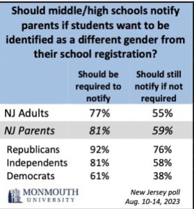 October 26, 2023As is well known in polling, if you want a certain response, you have to ask the right question. The way you phrase the question makes all the difference. Now we have a classic example of such polling in the New Jersey culture wars, and in particular over mandatory parental notification policies. The NJEA has been out front opposing mandatory parental notification policies and was caught offsides by a highly credible Monmouth poll showing the vast majority of parents supported mandatory notification. So the NJEA engineered a new poll to get the response it wanted. Presto! The NJEA is aligned with parents after all.