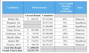 Note who is NOT listed: Sean Spiller. That’s because Spiller has raised so little money that he is the only Democratic candidate who failed to qualify for matching funds. He’s also the only candidate to fail to qualify for the next two gubernatorial debates. Spiller won’t even be on the stage!