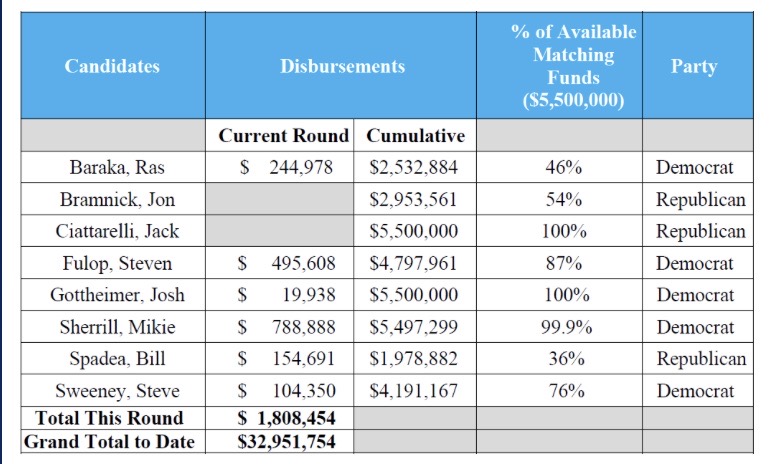 Remember that Spiller’s poor poll results occurred after two pro-Spiller Super PACs, Protecting Our Democracy and Working New Jersey, have spent $22.25 million blanketing the state in mailers and ads backing Spiller. That money dwarfs what any other candidate has spent (see below). Yet Spiller sits at 9%.