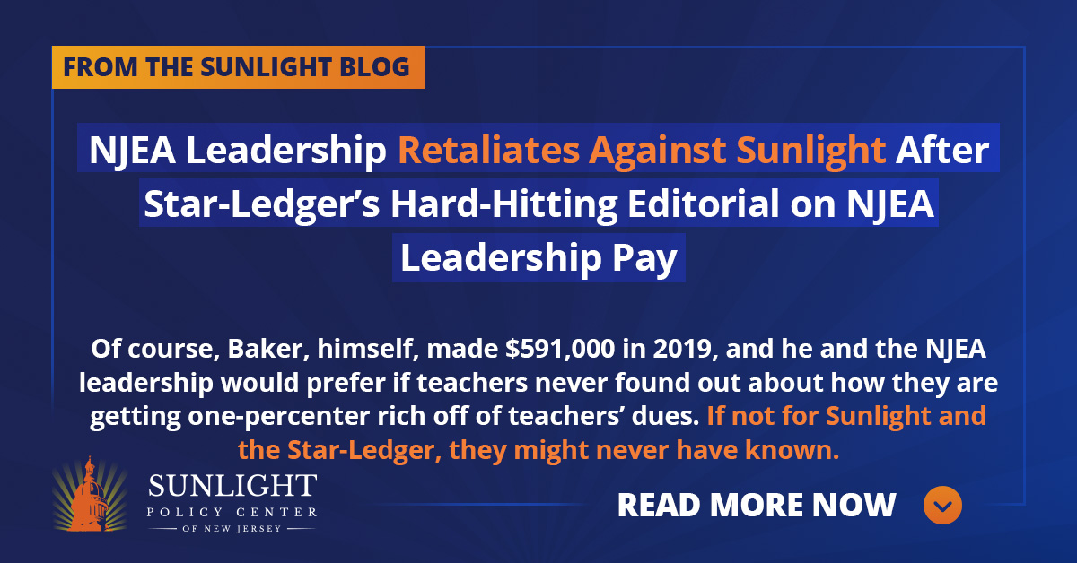 Yesterday, the Star-Ledger published an excellent editorial “Money Still Piling Up for the NJEA Brass,” which cited Sunlight’s discovery that NJEA Executive Director Ed Richardson was […]